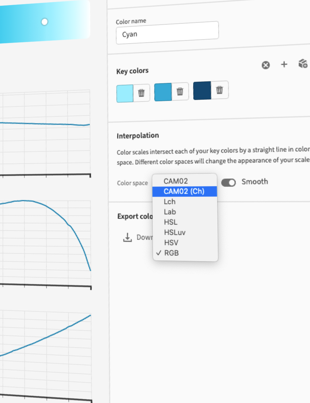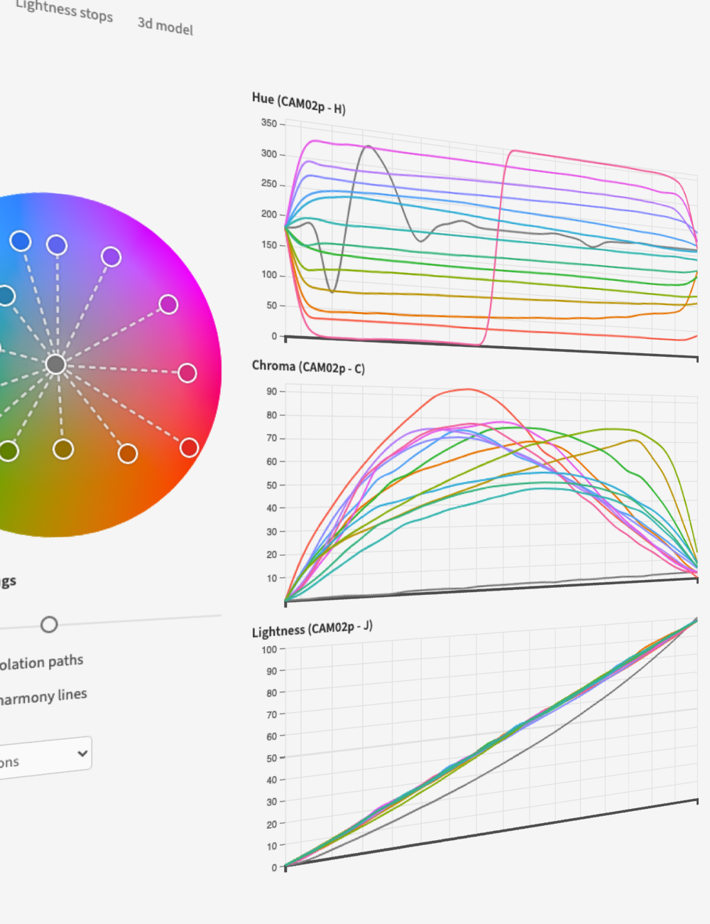 This project is currently built using Chroma.js with custom extensions to supportCIE CAM02. Additional functionality is added in Leonardo to enhance chroma scales so that they properly order colors by lightness and correct the lightness of the scale based on HSLuv.