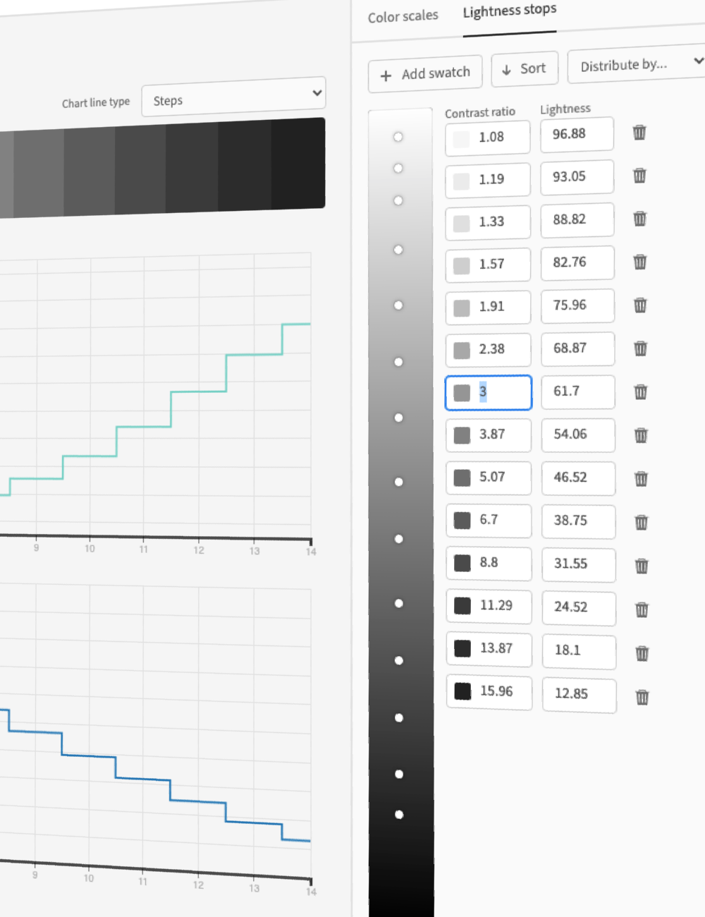let theme = new Theme({colors: [gray, blue, red], backgroundColor: gray, lightness: 97});